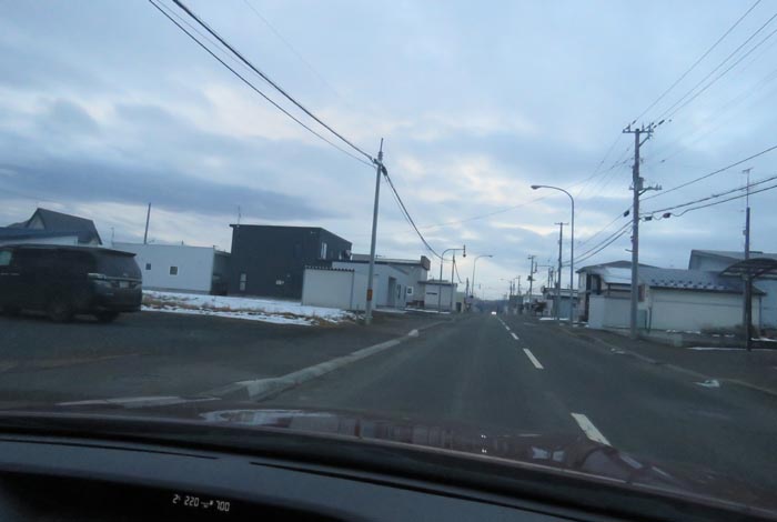 産岸通りから左折して西5号線のバス停前から北光通り交差点方向
