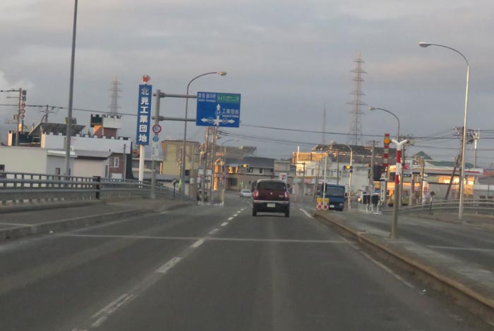 とん田通り、無加川橋を渡り錦町の南岸通り交差点