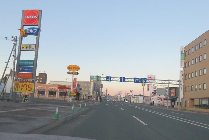 午前6時50分、北4条通りの国道39号交差点を右折で緑園通り方向