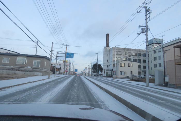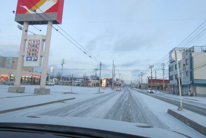 末広町の南岸通り、西4号線バス停前から野付牛自動車学校方向