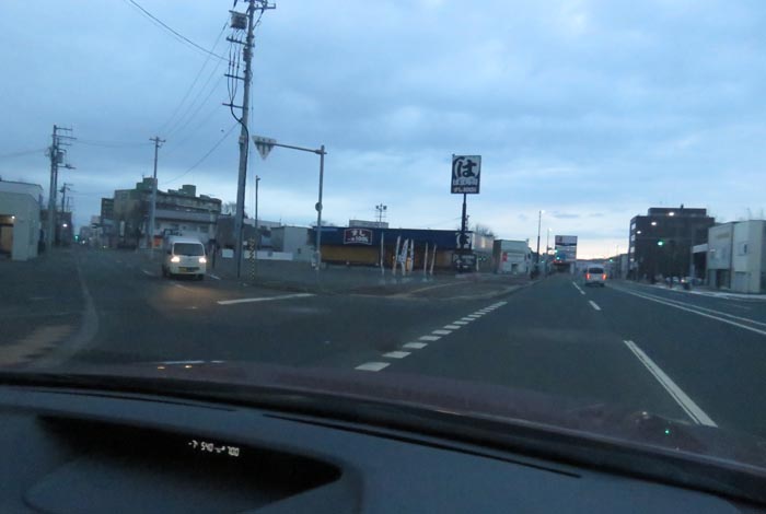 南岸通り、野付牛自動車学校前、前方はとん田通りの交差点