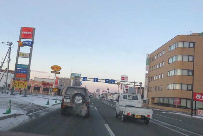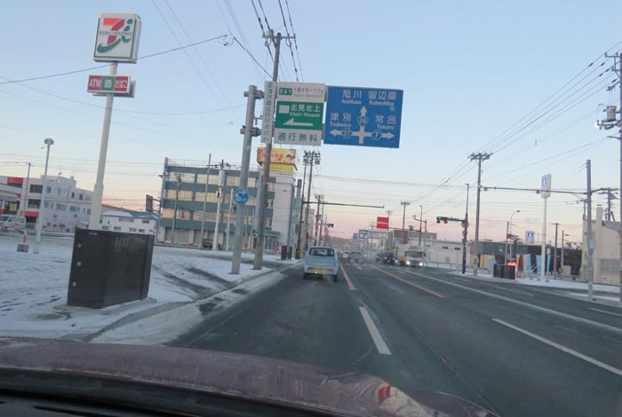 午前7時00分、北4条通りの国道39号交差点を右折で緑園通り方向