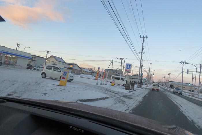 午前7時10分、南岸通り、野付牛自動車学校前から無加川町方向