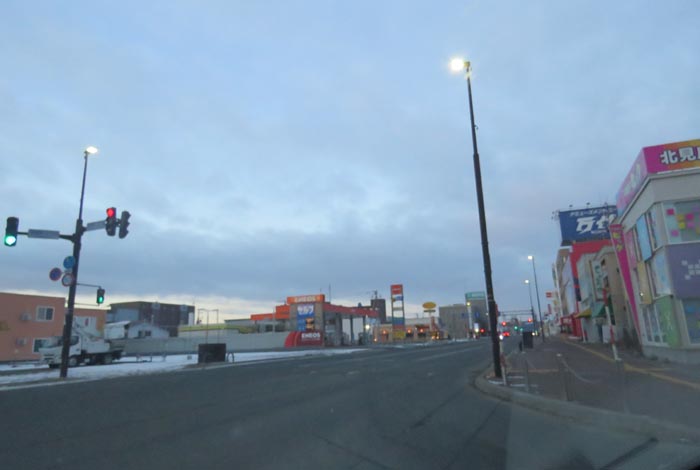 午前7時00分、北4条通りの国道39号交差点を右折で緑園通り方向