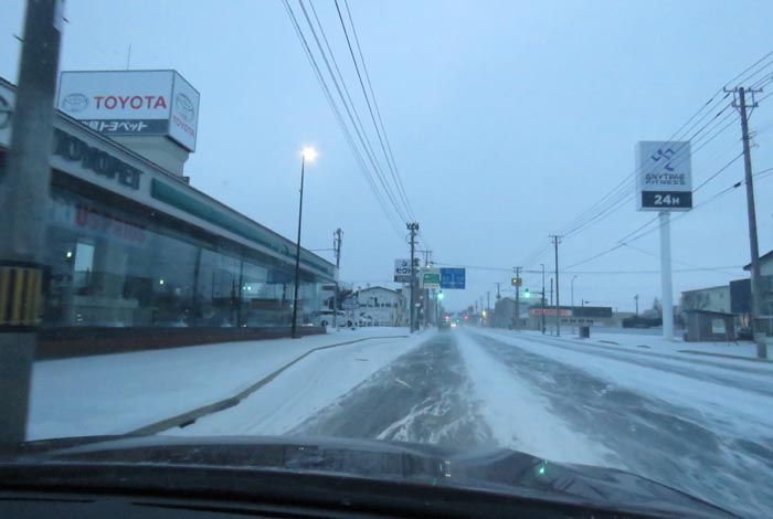 午前7時00分、北4条通りの国道39号交差点を右折で緑園通り方向