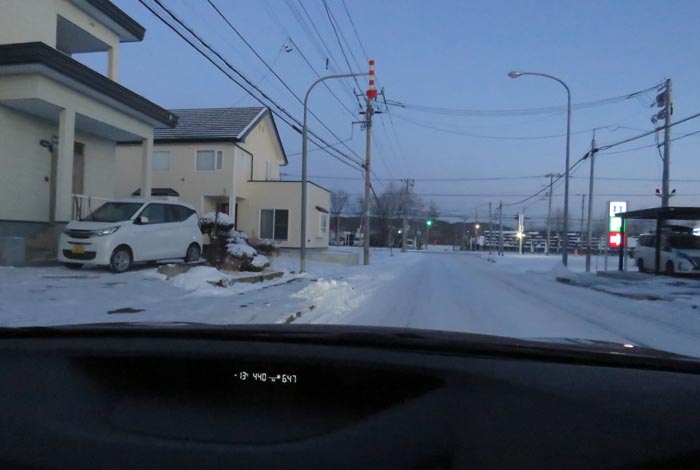 南岸通り、野付牛自動車学校前、前方はとん田通りの交差点
