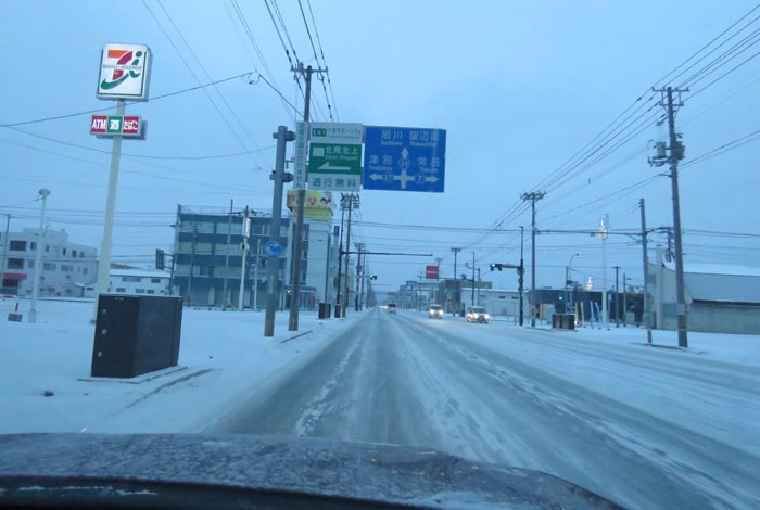 午前7時00分、北4条通りの国道39号交差点を右折で緑園通り方向