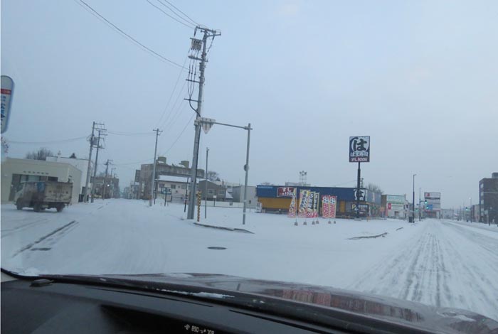 末広町の南岸通り、西4号線バス停前から野付牛自動車学校方向