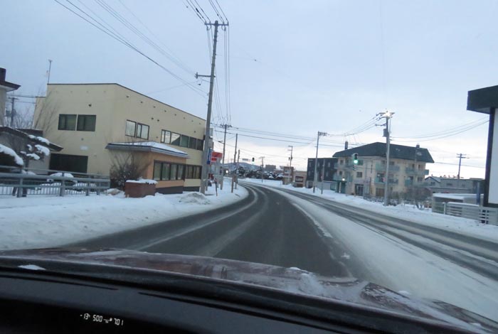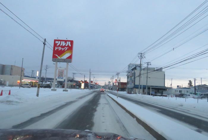 末広町の南岸通り、西4号線バス停前から野付牛自動車学校方向