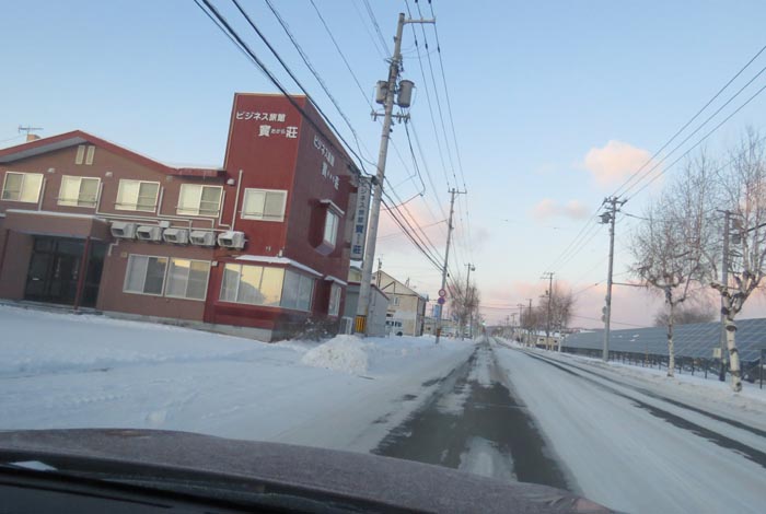 午前7時10分、南岸通り、野付牛自動車学校前から無加川町方向
