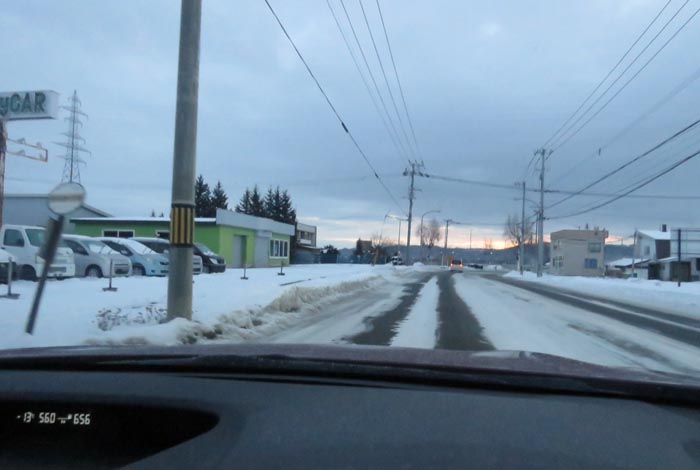 末広町の南岸通り、西4号線バス停前から野付牛自動車学校方向