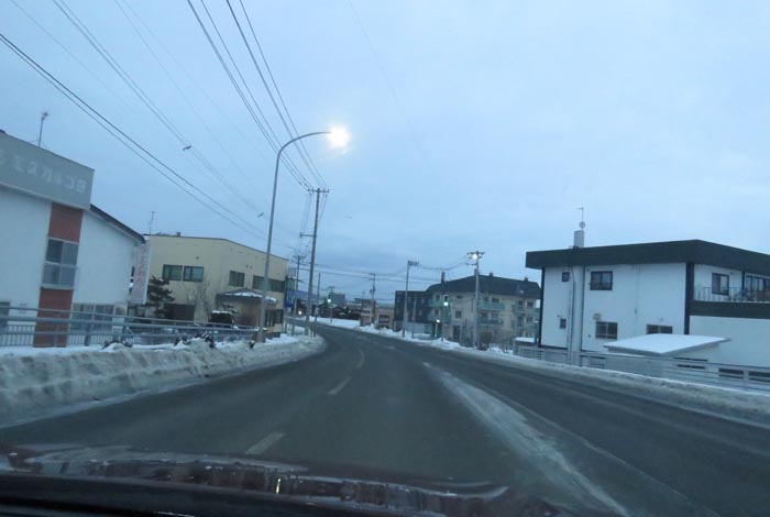 末広町の南岸通り、西4号線バス停前から野付牛自動車学校方向
