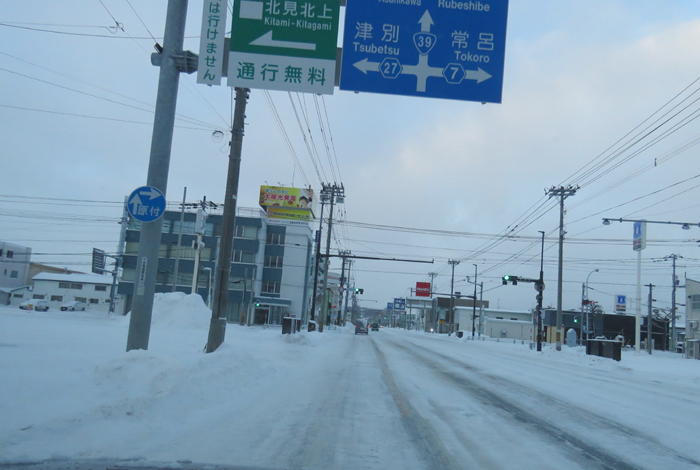 国道39号、北見トヨペット前からとん田通り交差点方向