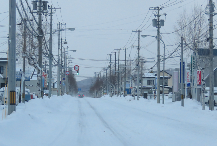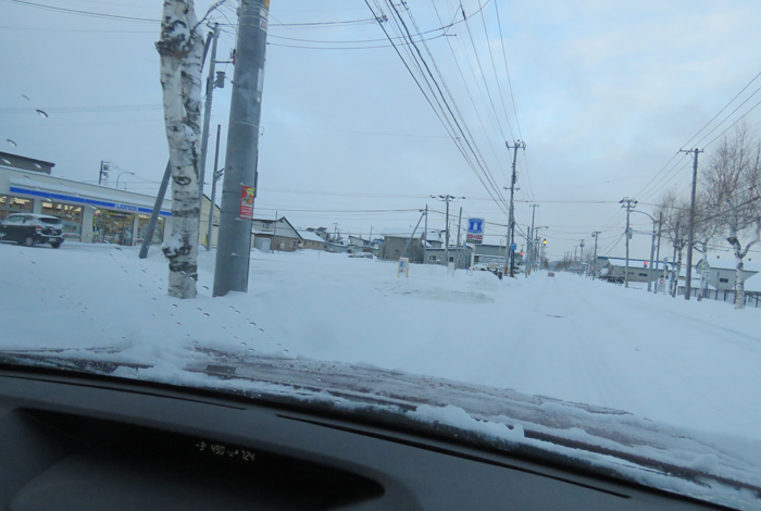 午前7時20分、南岸通り、野付牛自動車学校前から無加川町方向