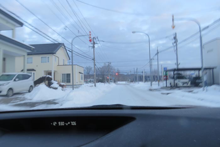 末広町の南岸通り、西4号線バス停前から野付牛自動車学校方向