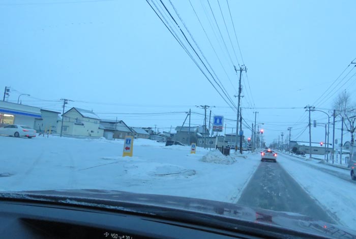 午前7時00分、南岸通り、野付牛自動車学校前から無加川町方向