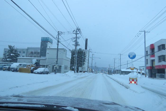 午前6時50分、西3号線とん田通りの北見中央病院横から無加川橋方向