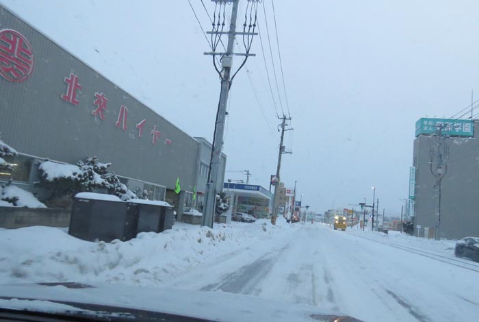 末広町の南岸通り、西4号線バス停前から野付牛自動車学校方向