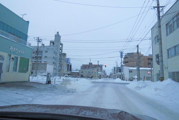 午前6時50分、国道39号、北1条通り交差点