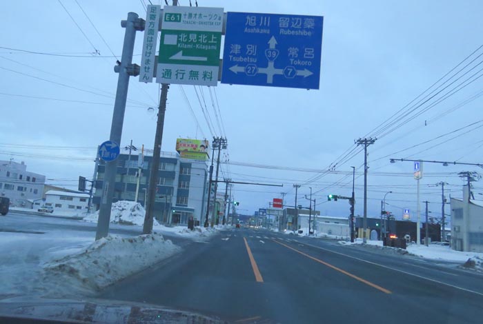 国道39号、北見トヨペット前からとん田通り交差点方向