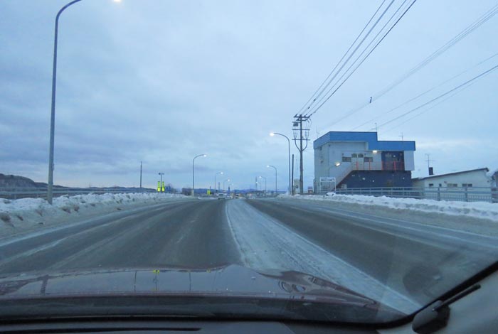 午前6時50分、西3号線とん田通りの北見中央病院横から無加川橋方向