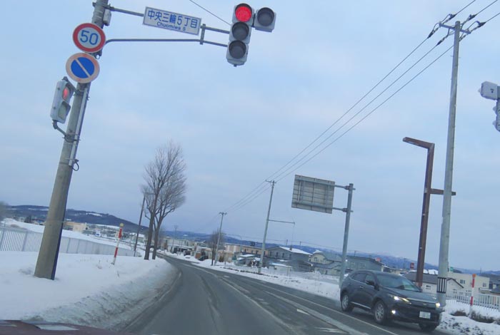 南大通り、北見三輪小学校の前あたり