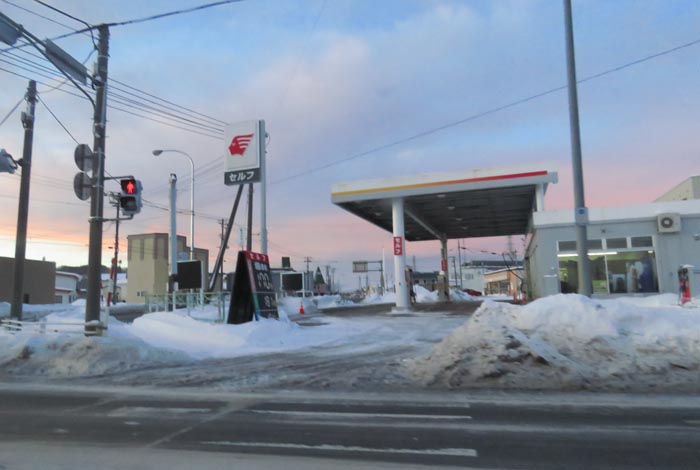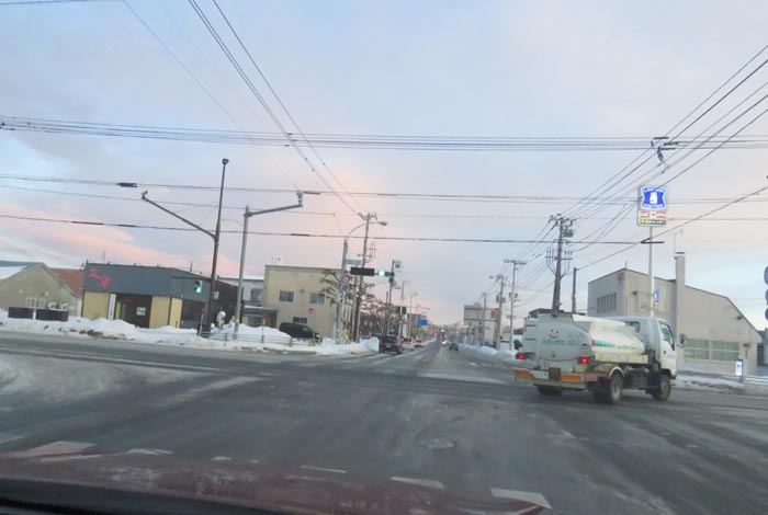 末広町の南岸通り、西4号線バス停前から野付牛自動車学校方向