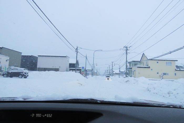 産岸通りから左折して西5号線のバス停前から北光通り交差点方向