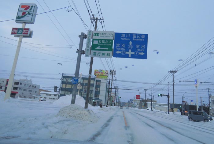 国道39号、北見トヨペット前からとん田通り交差点方向