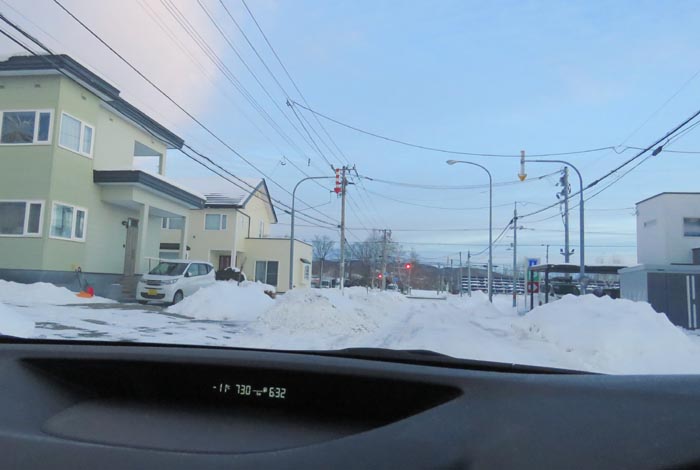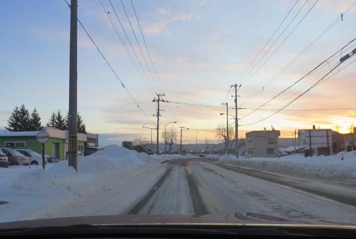 末広町の南岸通り、西4号線バス停前から野付牛自動車学校方向