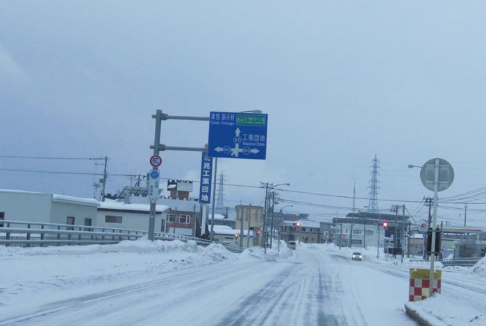 午前6時40分、西3号線とん田通りの北見中央病院横から無加川橋方向