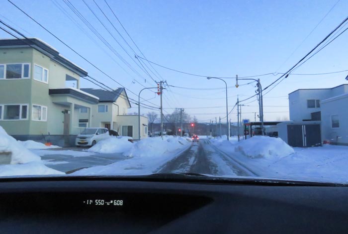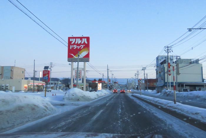 末広町の南岸通り、西4号線バス停前から野付牛自動車学校方向