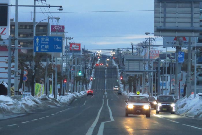 南岸通り、とん田通りの交差点から右は北光神社方向