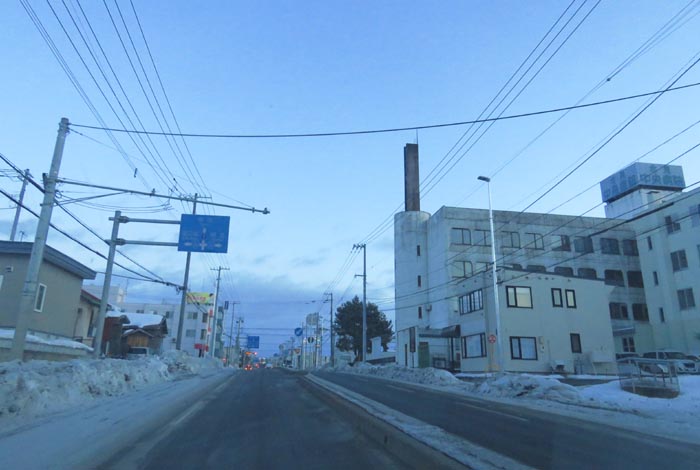末広町の南岸通り、西4号線バス停前から野付牛自動車学校方向
