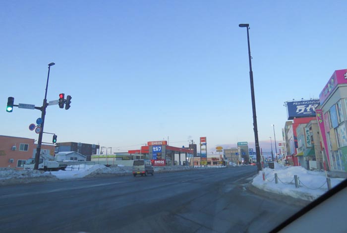 午前6時10分、北4条通りの国道39号交差点を右折で緑園通り方向