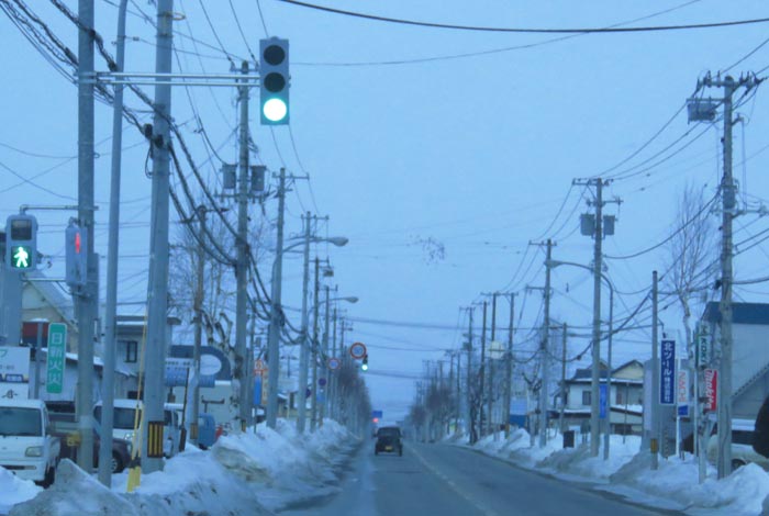 午前6時20分、南岸通り、野付牛自動車学校前から無加川町方向