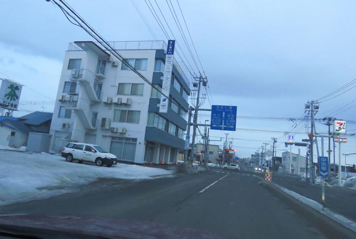 末広町の南岸通り、西4号線バス停前から野付牛自動車学校方向