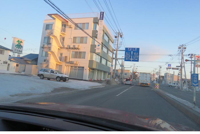 末広町の南岸通り、西4号線バス停前から野付牛自動車学校方向