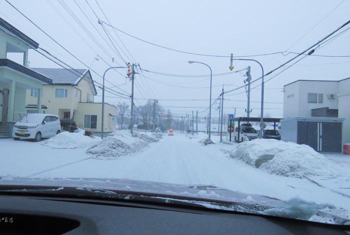 末広町の南岸通り、西4号線バス停前から野付牛自動車学校方向
