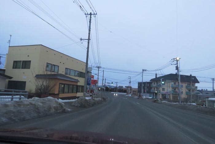 末広町の南岸通り、西4号線バス停前から野付牛自動車学校方向