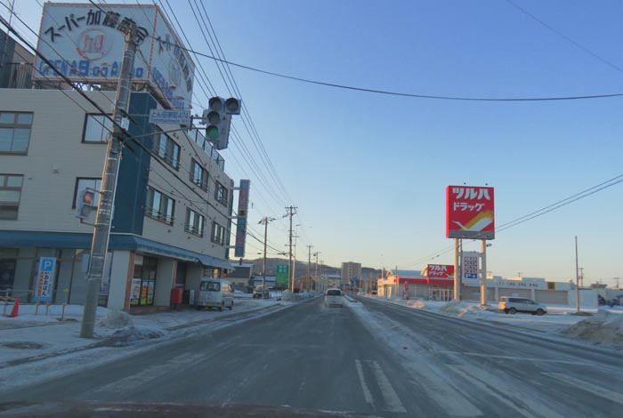 午前6時00分、西3号線とん田通りの北見中央病院横から無加川橋方向