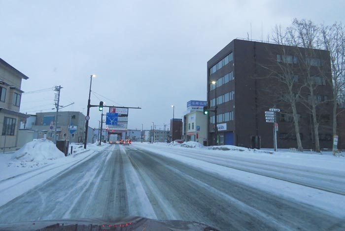 午前5時50分、国道39号、北1条通り交差点