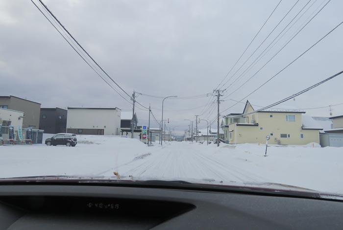 産岸通りから左折して西5号線のバス停前から北光通り交差点方向