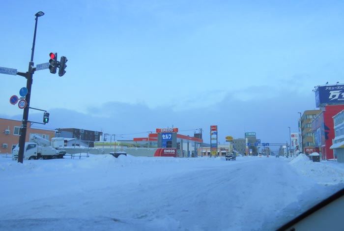 午前5時50分、北4条通りの国道39号交差点を右折で緑園通り方向