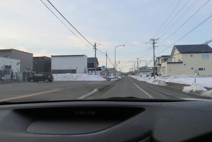 産岸通りから左折して西5号線のバス停前から北光通り交差点方向