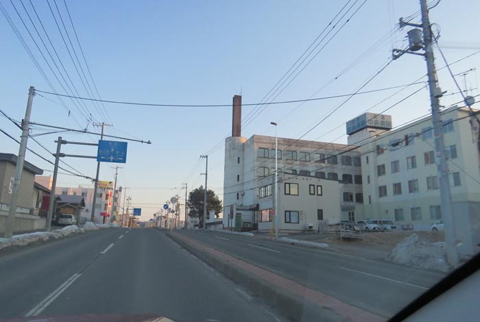 末広町の南岸通り、西4号線バス停前から野付牛自動車学校方向