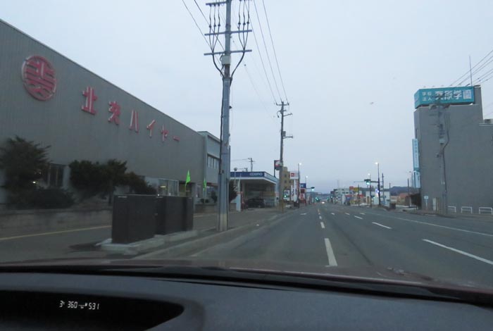 末広町の南岸通り、西4号線バス停前から野付牛自動車学校方向