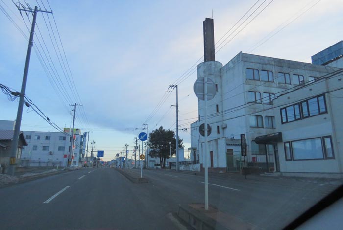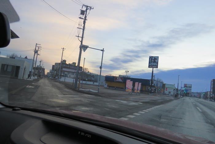 末広町の南岸通り、西4号線バス停前から野付牛自動車学校方向
