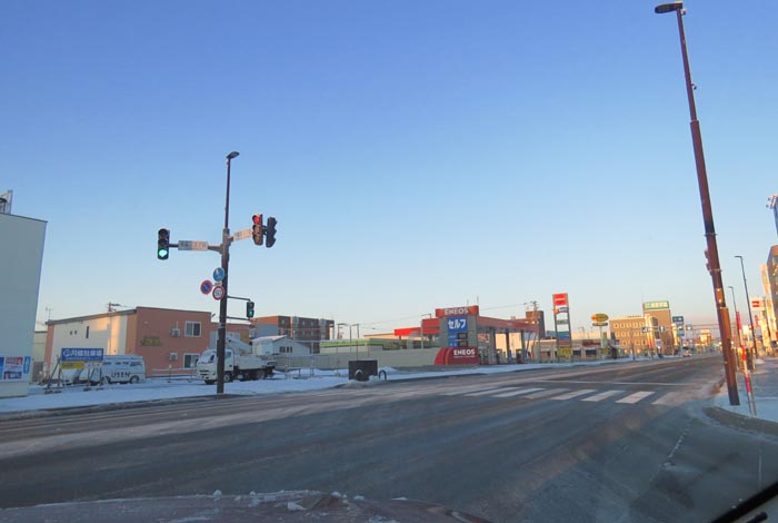午前5時20分、北4条通りの国道39号交差点を右折で緑園通り方向