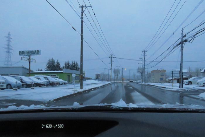 末広町の南岸通り、西4号線バス停前から野付牛自動車学校方向
